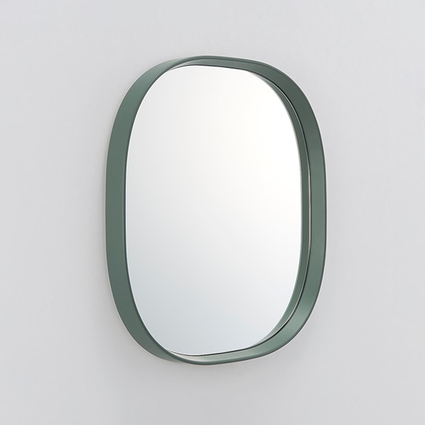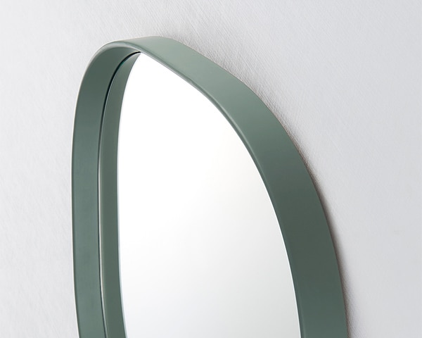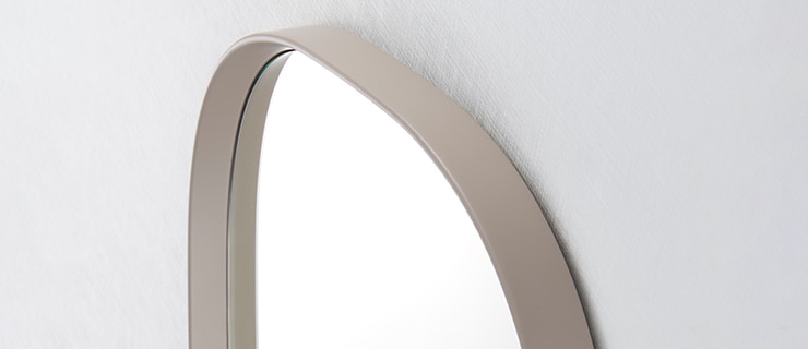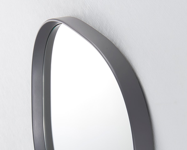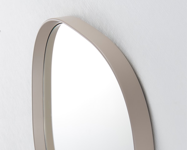 「スーパー楕円」と呼ばれる、長方形と楕円のちょうど中間のような、四角のようでいて丸みを帯びたフォルム。見る人にやさしい印象を与えてくれるデザインのミラーです。天然木を削りだしたフレームのスリムエッジは、最後の仕上げを職人が手作業で行うことで、やわらかで洗練された雰囲気をまといます。