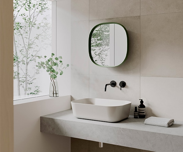 カラー展開は、インテリアの一部として楽しめるマットでナチュラルな3色のカラーバリエーションをご用意。水栓や洗面ボウルなど、空間全体でコーディネートしやすいカラーです。