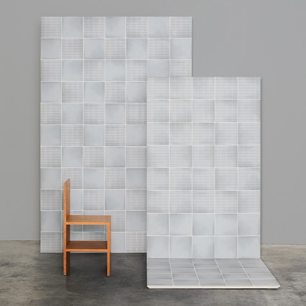 主張しすぎない色調で、マットな表面感。グリッド線は工業的な正確さではなく、繊細でアナログ感があり、空間にやわらかな印象をもたらします。室内の壁面に最適ですが、室内の床にお使いいただくことも可能です。