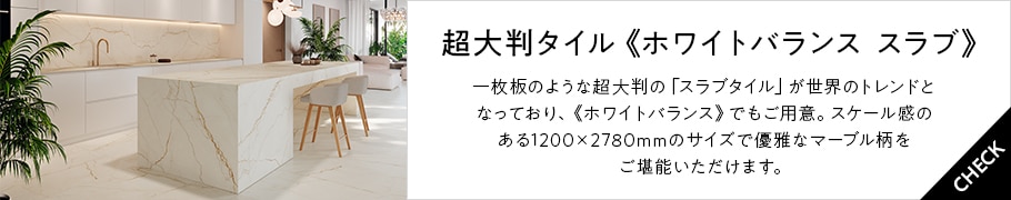 スラブタイルと呼ばれる超大判サイズもあり、空間全体のコーディネートに最適。スペイン発の高性能な磁器質タイルブランド「GRESPANIA(グレスパニア)」の製品です。