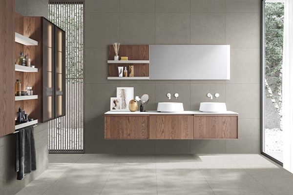 屋内はもちろん、屋外でも使用可能。磁器質タイルであるため、摩耗にも強く耐久性があり、モダンな商業施設などの大型プロジェクトにも最適です。