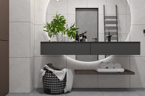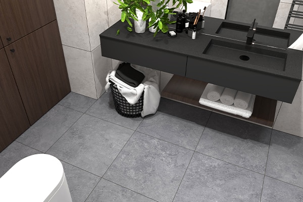 イタリアの街の名でもある《ペーロ》。伝統的な石造建築と新たな都市機能が混在する街並みのように、トラバーチン(石灰岩)の表情を現代的に再構築しました。一般的な横縞ではなく、多方向にゆらぎのあるデザインが空間に立体感と奥行き感を演出。滑りにくいラフ仕上げで、商業施設などにも安心してお使いいただけます。