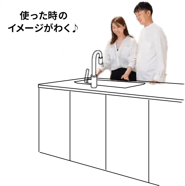 - サイズのアドバイスもしていただき、子供と一緒に料理する憧れをかなえるための横幅や奥行きのイメージがついた!