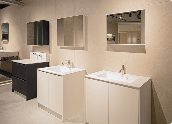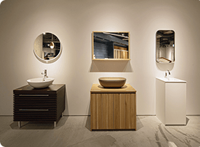 自由な組み合わせで理想の洗面空間にミラー・ボウル・水栓・カウンターetc...多種多様な機能・デザインの組み合わせを展示中!展示商品毎に壁の色や質感も変えています!洗面ボウルだけでなく空間全体のコーディネートの参考に!