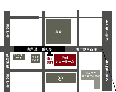 - 〒980-0811 宮城県 仙台市青葉区 一番町2-4-1 青葉通パークビルディング 1F