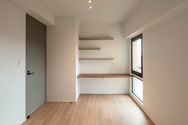 柱と柱の間にできるデットスペースを活かして、カウンターを設置してデスクスペースにするのも効果的です。